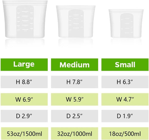 100% Silicone Reusable Food Storage Bags - 3-Piece Eco-Friendly Set for Zero-Waste Kitchen