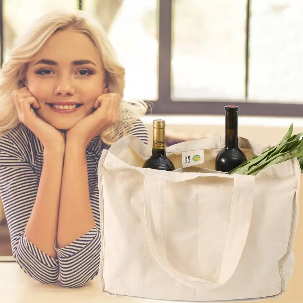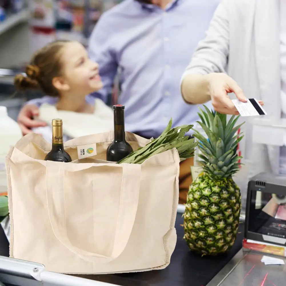 100% Cotton Supermarket Shopping Bag Reusable Grocery Shopping Bags Large Heavy Duty Canvas Grocery Tote Bags