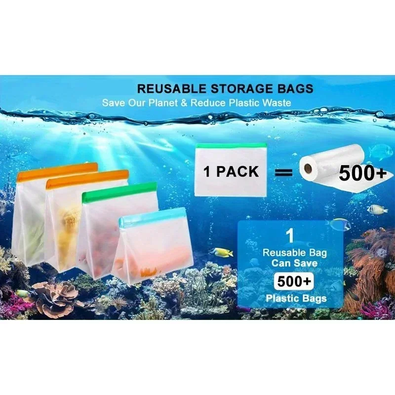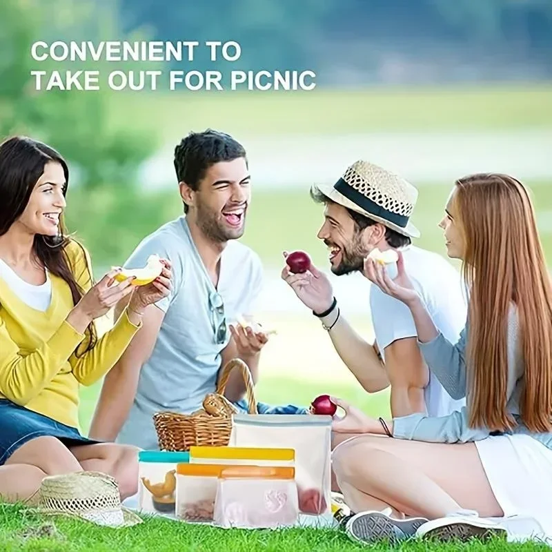3pcs Leakproof Containers Silicone Food Storage Containers Reusable Stand Up Zip Shut Bag Fresh Bag Food Storage Bag Fresh Wrap