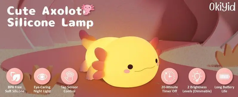 Cute Axolotl LED Night Light,Dinosaur lamp,Squishy USB & Mobile Touch Lights,Night Bedroom Lamp